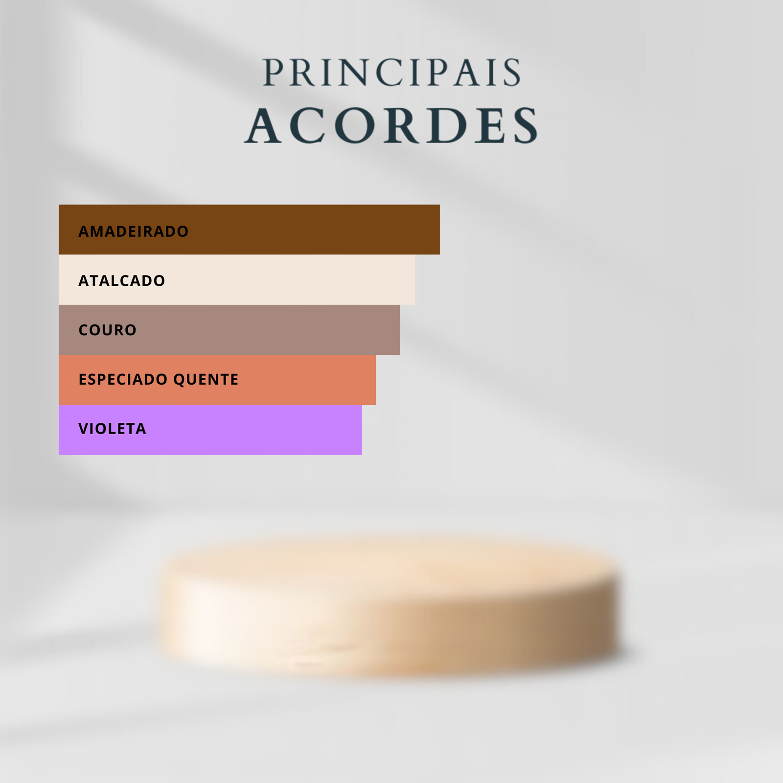 Sândalo, Couro, Papiro, Cedro da Virgínia, Cardamomo, Violeta, Íris e Âmbar